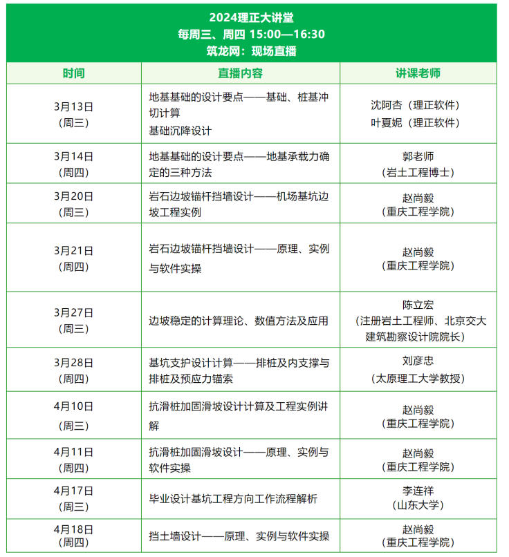本网讯(图/文 建筑工程学院) 为助力全国高校土木工程专业学子顺利完成毕业设计,同时提升学生的实践操作能力,理正软件与筑龙学社联合举办了土木工程专业毕业设计直播培训,特别邀请建筑工程学院赵尚毅副教授参与授课。本次培训课程共计10期,涉及基坑、边坡、结构等多个专题,培训内容围绕基础操作技巧,并结合实际工程案例进行深入讲解,以确保学生能够快速掌握并应用于毕业设计之中。