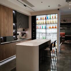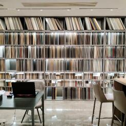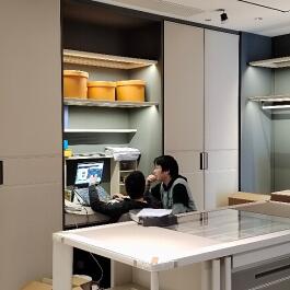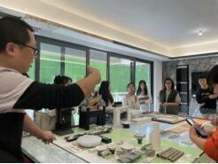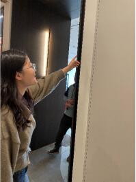 次日,2020级毕业班学生至全屋定制企业的设计部和产品展厅进行了参观学习。企业负责人就其工作流程、材料样板和岗位分工等内部情况进行了详细的介绍。到访学生认真观摩了各部门的工作现场(见图7),并虚心请教企业老师关于家具设计的细节问题(见图8)。