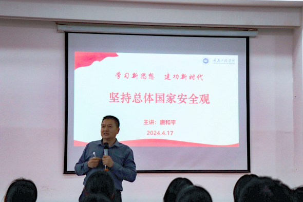 唐书记以“坚持总体国家安全观”为主题进行了讲解,阐述了正确理解和坚持总体国家安全观的必要性。他指出,坚持总体国家安全观,必须坚持国家利益至上,以人民安全为宗旨,以政治安全为根本,统筹外部安全和内部安全、国土安全和国民安全、传统安全和非传统安全、自身安全和共同安全,坚决维护国家主权、安全、发展利益。面对日益复杂多变的国内外安全形势,同学们必须始终保持高度警惕,充分认识到政治安全、国土安全、经济安全、社会安全、网络安全、外部安全等重点领域国家安全的重要性,既要有防范外部风险的能力,也要有解决内部矛盾的智慧。他强调,国家安全不仅仅是国家层面的事务,它与每一个人的生活都息息相关,只有我们每一个人共同努力,才能真正实现国家的长治久安。他要求同学们作为新时代的青年,应该具备基本的安全防范意识,学会在日常生活中识别和防范各种安全风险,鼓励大家积极参与到国家安全建设中来,用自己的知识和技能为保障国家安全贡献力量。