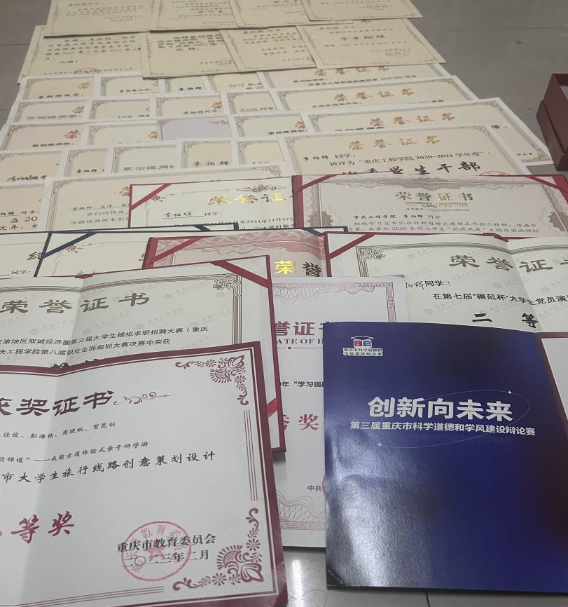 在大一时,在辅导员蔡丽辅导员老师的影响下,李柏辉就积极参加各类比赛和活动,大一时期课程较少且课程设置较为简单,于是李柏辉便将多余的时间精力放到了素质活动上,积极开展参加各类活动,在活动中更加加深了李柏辉对自己大学期间的职业生涯规划。“明确自己想要的是什么,大一多尝试各类举办参加各类活动,大二积极参加比赛,以赛促学,大三大四积极开展专业实习,让所学的专业知识运用到实践中,能够更快的了解专业,也知道企业需要我们具备的专业知识。”李柏辉说。从晨课演讲月冠军到互联网+大赛,从辅导员助理到校友服务中心负责人、从第一张月冠军奖状到现在的破百奖状,从入党积极分子到现在的正式党员,从小小的造价模型到现在能够独立完成项目招投标,这一路他一直从未放弃奔跑,勇敢追求自己想要的。