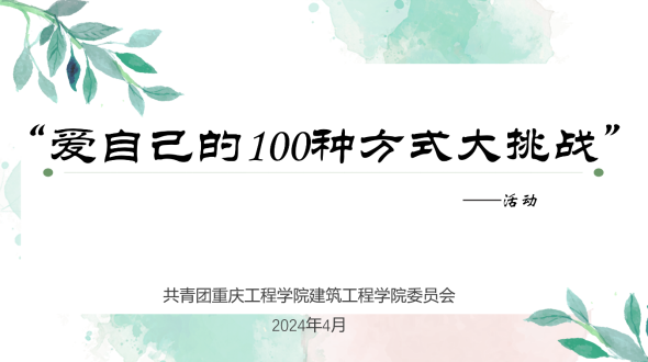 本网讯(图/文 李海燕) 为提升同学们的自我价值感和幸福感,培养健康的自我认知和情感管理能力,建筑工程学院学生会生活部于4月15日—4月21日顺利举办“爱自己的100种方式大挑战”活动。此次活动面向建筑工程学院全体同学。