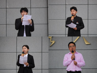 在激昂的国歌声中,五星红旗冉冉升起,师生们肃立注目,心中充满了对祖国的热爱与敬意。随后,21级学生代表管亿豪、22级学生代表谭睿发表了主题演讲,回顾了五四运动的光辉历程,强调了新时代青年肩负的历史使命和责任担当。而后,王成林老师发言,她回顾了五四运动的历史意义,展望了新时代青年的责任和使命。他们号召全体同学要坚定信仰,勇担重任,以实际行动践行五四精神,为实现中华民族伟大复兴的中国梦贡献青春力量。
