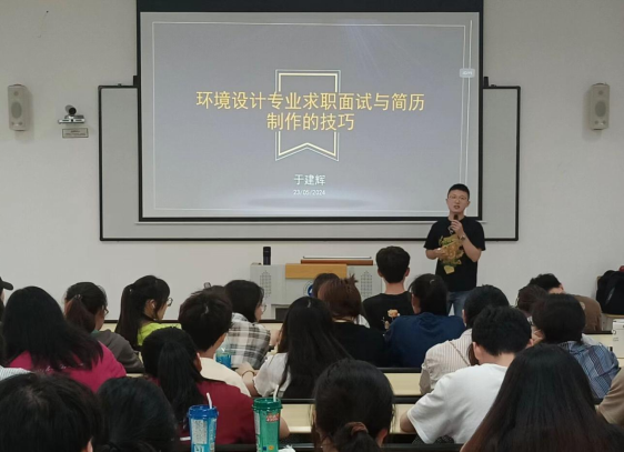 本网讯(文/图 晏麒智)为更好地帮助建筑工程学院学生了解就业政策,进一步提升学生求职的综合素质和能力,推进我校就业工作,2024年5月15日下午17:00-18:00,建筑工程学院在第六教学楼202举办“环境设计专业求职面试与简历制作的技巧”就业指导讲座,此次讲座由于建辉老师主讲,100余名学生参加了此次讲座。