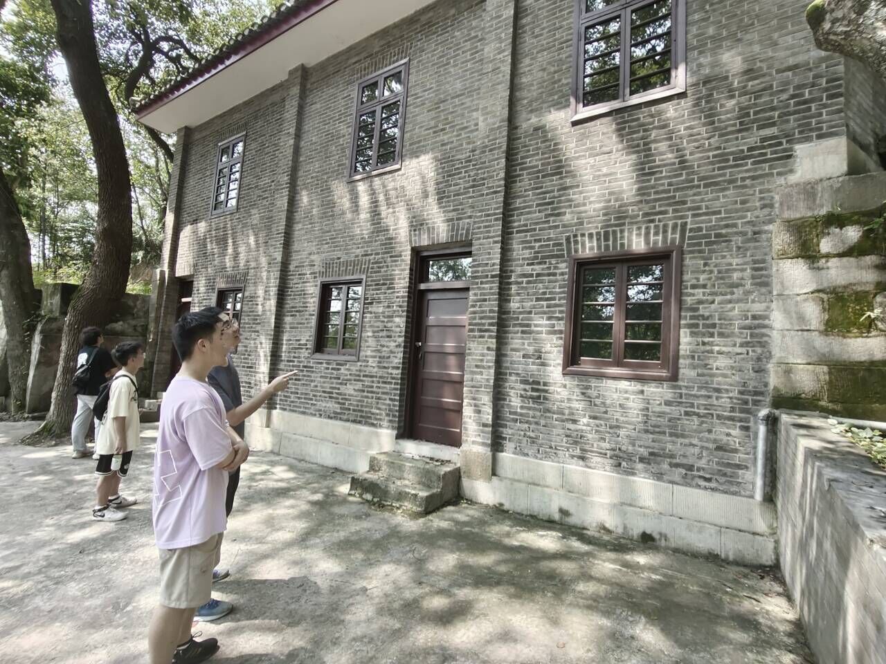 17名学生怀着敬仰和激动的心情踏上了探寻红色历史的征程。他们首先从南泉山庄出发,沿着蜿蜒崎岖的山路前行,用脚印一步一步地走进抗战时期革命先辈们的英勇历程,感慨着那抗战岁月的辉煌与沧桑。随后大家抵达了曾公馆门口,阅览铭刻着曾子唯将军生平的石碑,不禁回忆起往昔风流人物。最后大家走进古朴典雅的公馆,从那些被尘土和植被覆盖着的砖瓦家具感受到了些许凄凉悲怆,还有那位于后院的地道,阴幽深邃,无不道出战争时期的紧急形势。