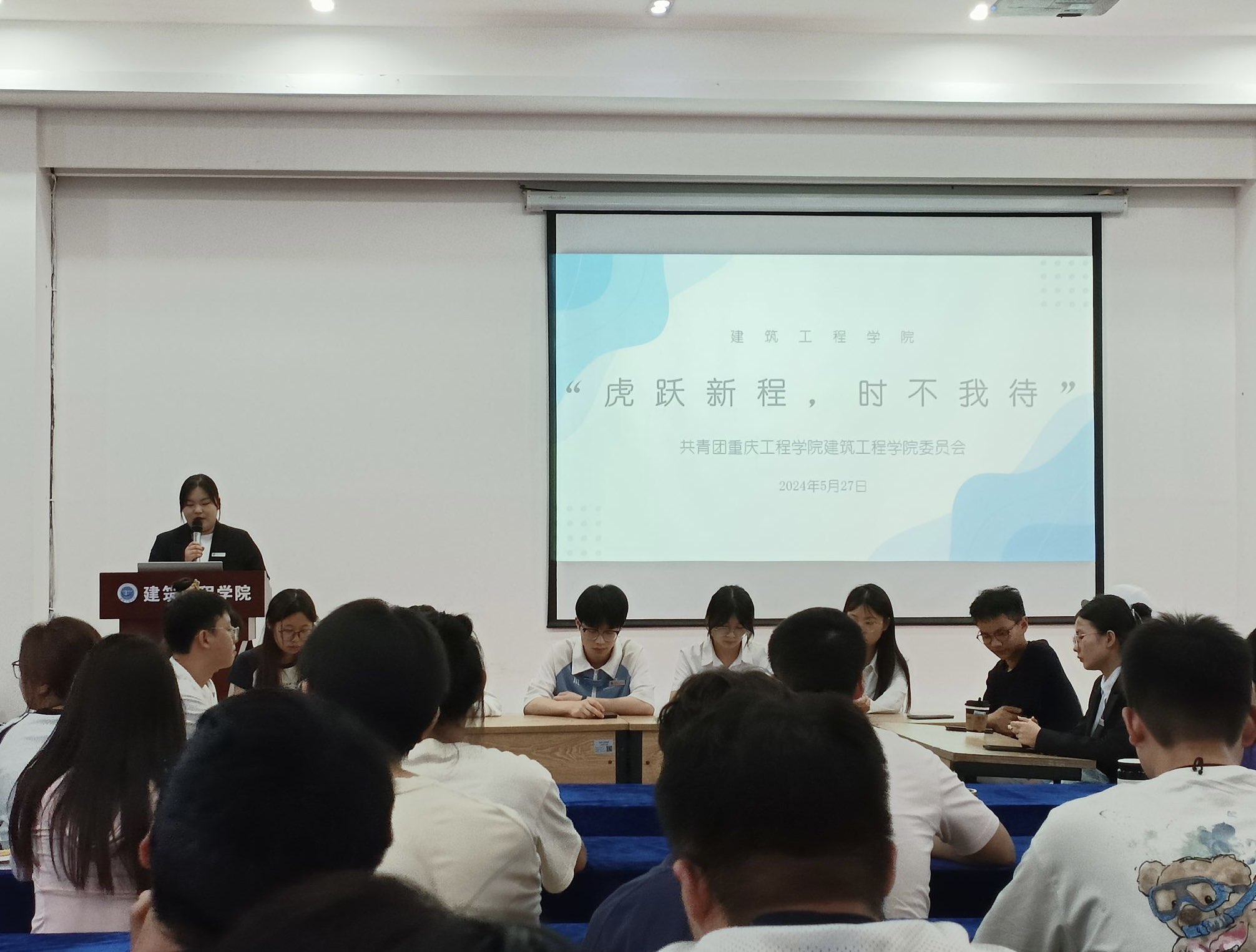 本网讯(文/李红碧 图/邓玉娇)为给建筑工程学院学子提供一个分享故事的舞台,增强同学们的自信心和自豪感。建筑工程学院学生会学习部于5月27日19:00-20:00在建筑工程学院办公楼三楼多功能厅开展“虎跃新程,时不我待”主题演讲。此次活动面向建筑工程学院全体同学,由建筑工程学院分团委书记张徐宇及21级团委、学生会学生骨干代表担任此次评委。