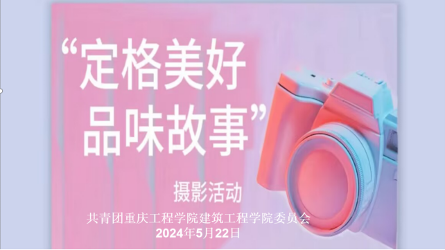 本网讯(图/文 向芯雨)为激发同学们对生活的热爱,留住美好瞬间,让同学们用相机定格生活中的美好。建筑工程学院团委外联部于5月22日—27日在线上开展“定格美好,品味故事”摄影活动。本次活动面向建筑工程学院全体同学。