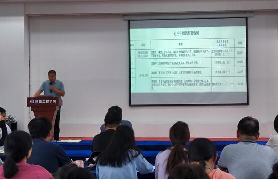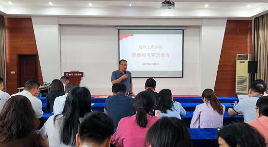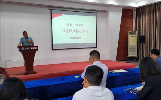 本网讯(文/图 吴俊峰) 为进一步巩固师德师风建设成果,持续加强师德师风建设工作质效水平,提升教师思想认识,规范教师育人行为,牢固树立教师底线意识。建筑工程学院于5月29日在学院多功能厅组织全体教职工开展师德师风警示教育。