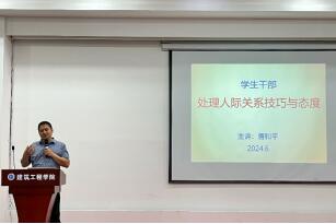 唐书记就“学生干部如何处理好人际关系”为主题开展了培训。他首先强调了处理人际关系的重要性,指出良好的人际关系不仅能营造和谐的工作氛围,更有助于提高工作效率。针对同学们可能存在的人际关系认知误区进行了解析,他指出,同学们在面对人际关系时,往往容易陷入自我中心、缺乏沟通等误区,这些误区会阻碍个人的成长和团队的发展。鼓励同学们要勇于面对问题,积极寻求解决之道。最后,他希望同学们要提高综合素质、促进个人成长,鼓励大家积极组织并参与团学活动,在活动中努力提升自己的能力和素质。