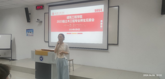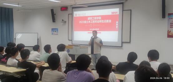 本网讯(文/图 建筑工程学院 戴晶晶/李颖) 6月6日下午,建筑工程学院在双桥校区教学楼101、107、210分三个专业大类开展“师生见面会”活动,学院院长助理李颖、学院学工负责人张徐宇以及三位系主任参加了此次活动。