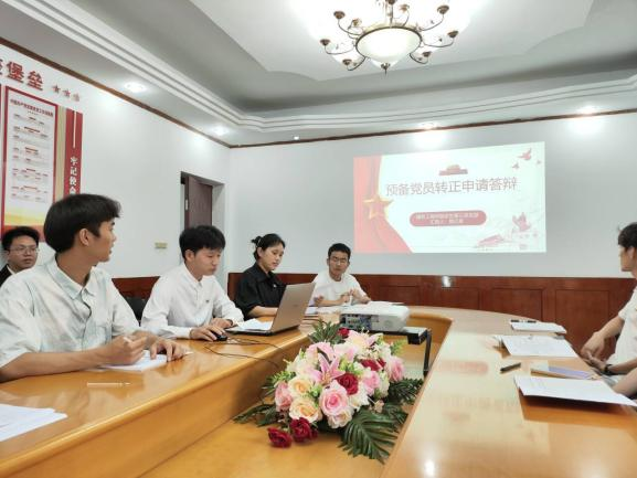 会议第三项为预备党员转正事宜,王杰、张鑫、张梦然、管亿豪四名同志依次对预备党员转正进行答辩汇报,经过入党介绍人的介绍和与会党员同志充分讨论,王杰、张鑫、张梦然、管亿豪四名同志如期转为中共正式党员。