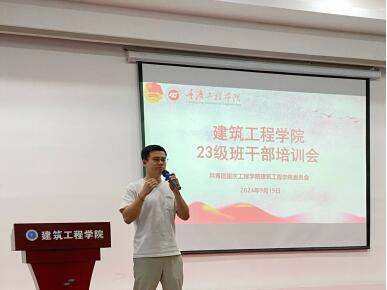本网讯(图/文 李红碧)为优化管理制度、提升团队凝聚力,促进建筑工程学院各班级长远发展。建筑工程学院团委、学生会于2024年9月19日在建筑工程学院办公楼三楼多功能厅开展建筑工程学院23级班干部培训会。参与本次会议的有建筑工程学院分团委书记张徐宇,22级团委、学生会各部门负责人及23级各专业班级班干部。