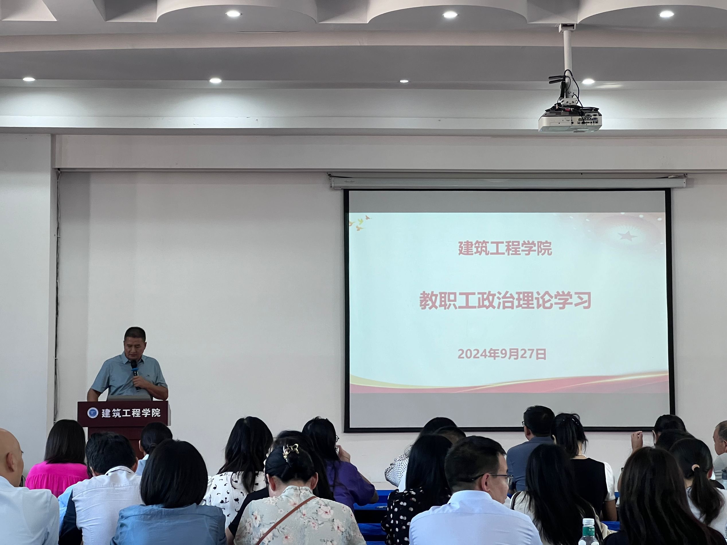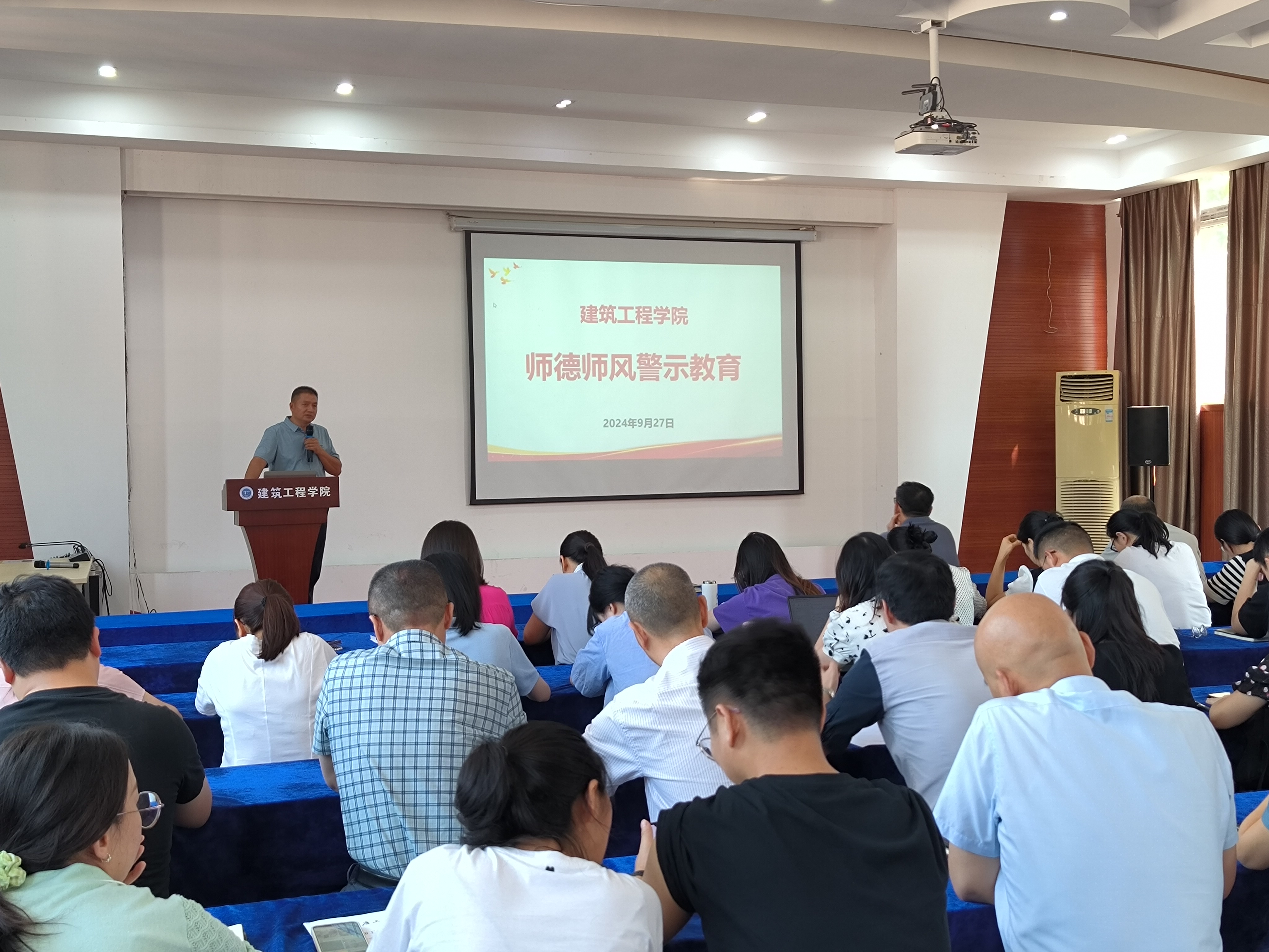 本网讯(文陈思言 /图 李秋红) 为持续加强和推进教师思想政治素质和师德师风建设,发挥典型案例在师德师风建设中的警示作用,引导广大教师不断提高自身道德修养,建筑工程学院于9月27日召开全体教职工大会开展政治理论学习和师德师风警示教育,由学院党总支书记唐和平主讲,全院教职工参加会议。