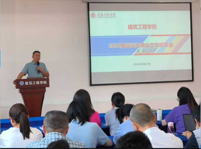 本网讯(文/图 李勇德)2024 年 9 月 27 日下午,建筑工程学院 2025 届毕业生就业工作启动会在学院三楼会议厅顺利召开。本次会议由学院党总支副书记唐和平主持,建筑工程学院全体教职工参加了会议。