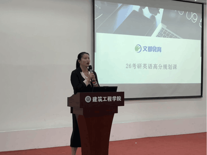 本网讯(图/李雨情 文/杨旭)为助力同学们明细考研院校与专业的选取方向,提升人生高度,把握考研趋势,建筑工程学院团委对外联络部10月16日在建筑工程学院办公楼三楼多功能厅精心举办了一场考研动员大会讲座活动。由文都考研机构的特邀讲师夏思洁为众多有考研想法的建筑工程学院学子提供了考研指导。