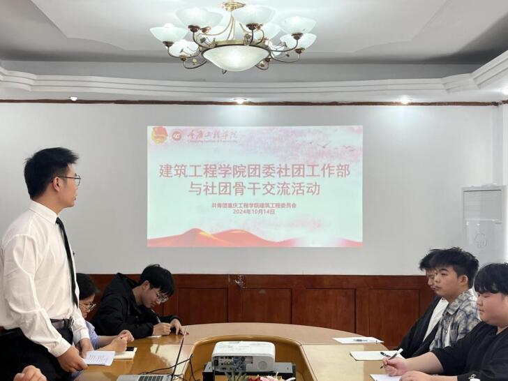 本网讯(文/何婷 图/陈若巧 刘诗怡)为打造一个积极向上、力争上游的社团群体,推动建筑工程学院的工作向更高质量、更深层次发展。建筑工程学院团委社团工作部于10月14日下午于建筑学院办公室楼二楼212会议室开展建筑工程学院团委社团工作部与社团骨干交流活动。建筑工程学院党总支副书记唐和平、分团委书记张徐宇、团委社团工作部全员以及建筑工程学院社团骨干参与本次活动。