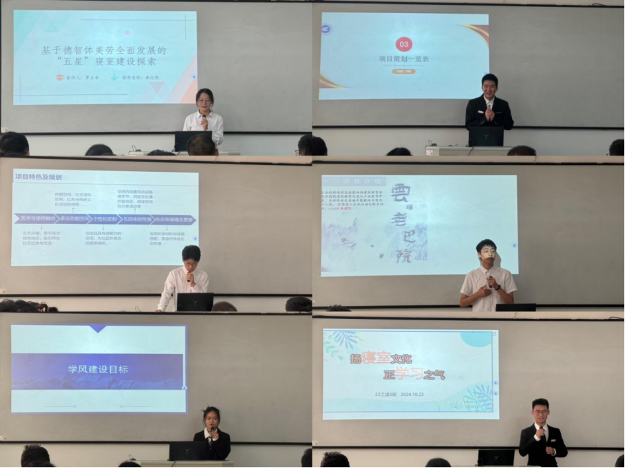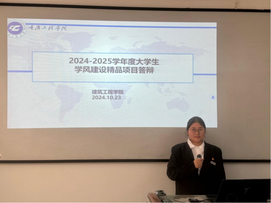 本网讯(文/图 冉绵亿)为进一步加强学风建设,营造勤学、善思、笃行的良好学习氛围,培养学生自主探究式学习意识,建筑工程学院学生会学习部于10月23日14:00-15:30在第一教学楼301教室举办2024-2025学年度大学生学风建设精品项目申报工作答辩。此次活动面向学院全体同学,由学院党总支副书记唐和平、分团委书记张徐宇和22级、23级辅导员担任评委。