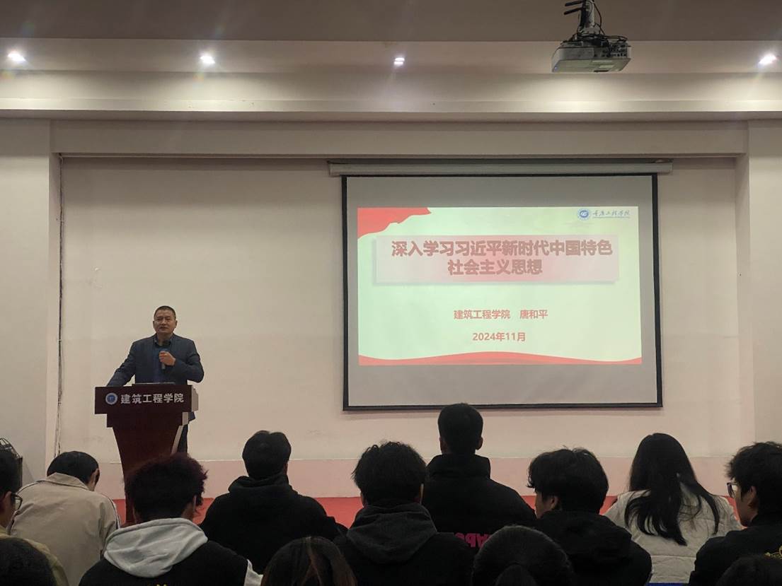本网讯(文/图 张徐宇) 为传播先进思想理念,引导同学们树立正确价值观。11月18日,建筑工程学院党总支副书记唐和平在学院办公楼三楼多功能厅开展“担当时代使命,共创美好未来”主题党课宣讲。此次活动主要面向学院分团委、学生会全体成员。