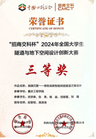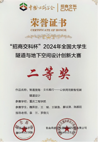 (文/图 土木工程系)2024年12月5日,“招商交科杯”2024全国大学生隧道与地下空间设计创新大赛决赛在重庆市南岸区举行。学院共选派3支队伍参赛,与众多985、211高校同台竞技,经过复赛、决赛2轮比拼,3支队伍全部获奖,由魏熙芸、王瑞、王骏逸、廖诠漪、陈颜阳组成的队伍获得二等奖(指导老师袁兰/罗鼎元),由武学森、张恩、杨淼、闭翠霞,刘婕组成的队伍(指导老师赵黎明/高涛涛)和熊胜、谭玉林、万宇,郑万路、王锐(指导老师罗鼎元/袁兰)组成的队伍获得三等奖。罗鼎元、袁兰、赵黎明、高涛涛获得优秀指导老师奖,重庆工程学院获得优秀组织奖。