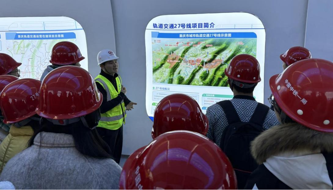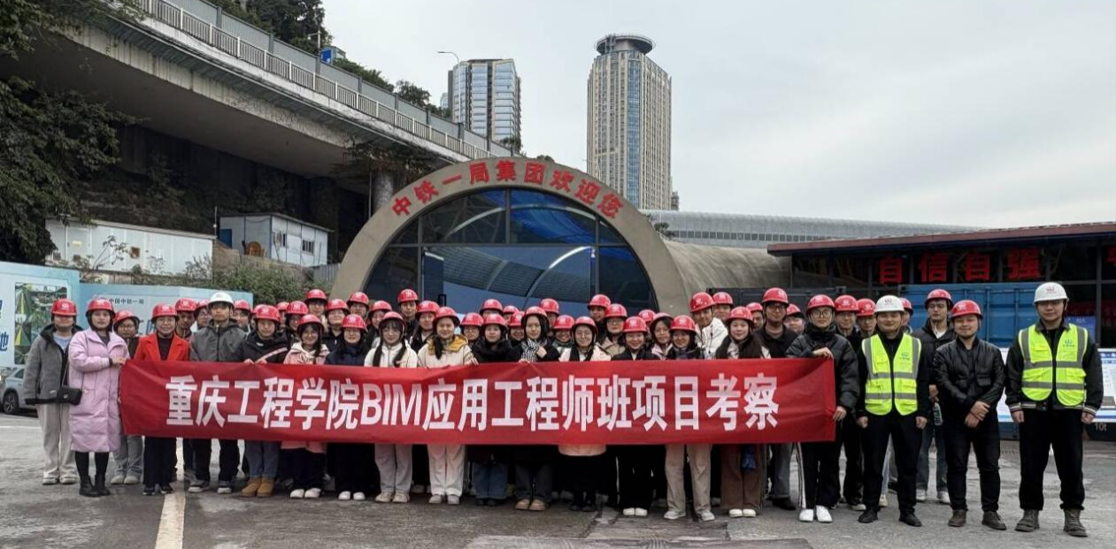 本网讯(文/图 林颖)为使学生更直观地了解“数字化设计、工业化生产、智能化施工、信息化管理”的智能化建造施工过程,2024年12月9日下午,22级BIM应用工程师班共计48名学生在系部的精心组织及老师们的带领下,前往中铁一局集团有限公司重庆轨道交通27号线土建8标项目部实地观摩、学习。