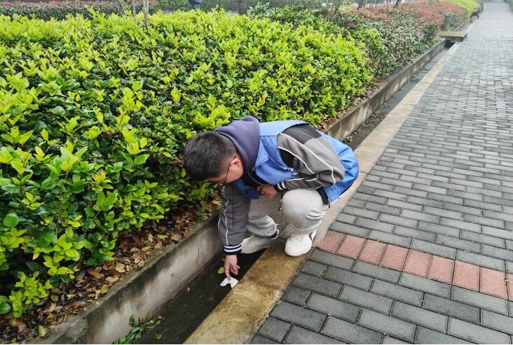 活动现场,经过活动负责人简短的动员讲话后,同学们迅速分组,身着统一的志愿者服装,手持垃圾袋、夹子等清洁工具,沿着樱花大道旁的花溪河进行认真清理。他们分工明确,有的负责用夹子夹起塑料瓶、烟蒂等废弃物;有的则负责将枯枝败叶和废纸屑拾起;还有的负责将收集到的垃圾进行分类处理。尽管天气微寒,但大家的热情却丝毫未减,每个人都全部投入到这场环保行动中来。在同学们的共同努力下,花溪河畔的环境焕然一新,大量被遗弃的塑料瓶、烟蒂、饮料瓶等垃圾被清理干净。同学们用实际行动展现了环保的紧迫性与重要性。