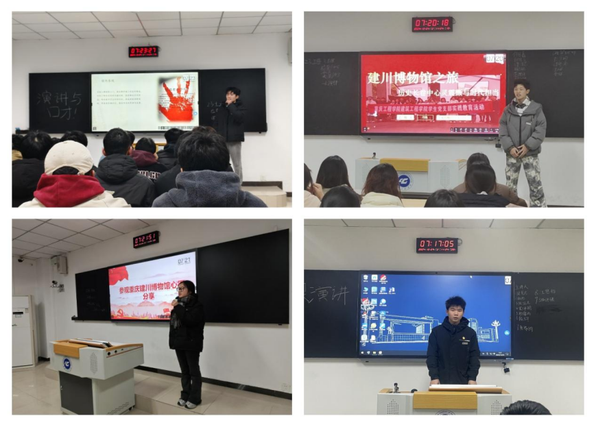 活动中,15名党员同志分别走进15个班级,与同学们分享了他们参观重庆建川博物馆的亲身经历和深刻感悟。他们从锈迹斑斑的武器装备,讲到反映战时人民生活的老物件,仿佛穿越时空,置身于那个战火纷飞却充满坚韧与希望的年代。同学们纷纷表示:“以往从课本上了解抗战历史,总觉得有些遥远,但在博物馆亲眼见到那些真实的文物后,才真正体会到先辈们的伟大。他们在如此艰苦的条件下,依然坚守信念,奋勇抗争,这种精神是我们当代人永远的财富。”