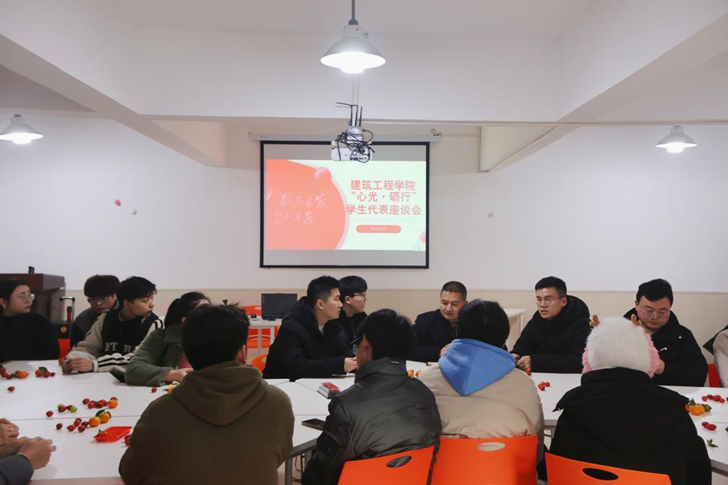 本网讯(文/图 陈若巧)为深化建筑工程学院师生间的沟通与交流,传递学校的深切关怀,激发学生的内在动力与对学校的归属感。在辞旧迎新的重要时节,建筑工程学院于12月31日中午在大学生服务中心205室召开“心光•砺行”学生代表座谈会。建筑工程学院党总支书记唐和平、分团委书记张徐宇、分团委副书记李敏、全体辅导员以及资助学生代表参与此次座谈会。