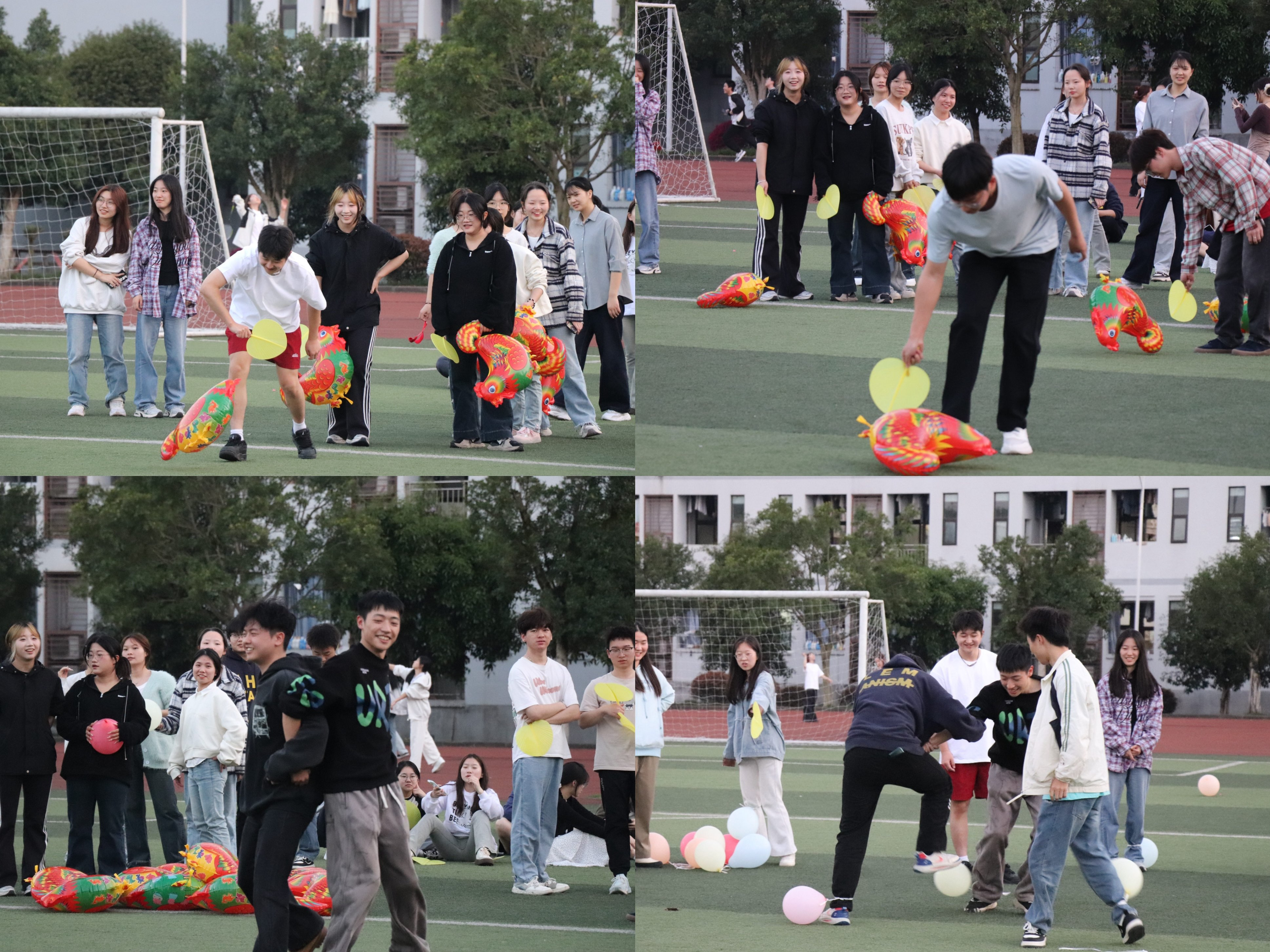 活动伊始,主持人热情洋溢地介绍了活动主题和规则,鼓励大家积极踊跃参与其中,大胆勇敢地展示自身风采。进入游戏环节,“两人三足”、“赶鸡入笼”、“背对背夹球”等一系列破冰游戏迅速打破了同学之间的陌生感,大家在轻松愉快的氛围中逐渐熟悉了彼此。最后的踩气球游戏更是将气氛推向了高潮,同组的同学配合默契,你攻我守。每一个趣味游戏都充分展现了同学们的团队精神和优秀的个人能力。此外,在自由交流环节,各学院同学围坐在一起,分享着自己的专业学习竞赛经历、团学工作经验以及学院特色与生活趣事,进一步加深了相互之间的了解。最后,此次联谊活动也在三方学院同学一起进行的温馨大合唱中落下了帷幕。