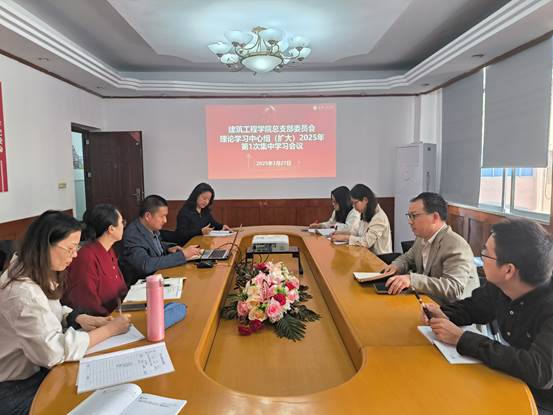 本网讯(文/图 吴俊峰) 3月27日,建筑工程学院党总支理论学习中心组召开了集中学习会议,党总支委员、学院领导班子及各支部书记参加了会议。