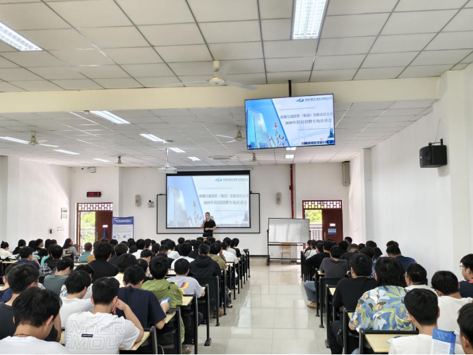 本网讯(文/图 王浩 曹新宇)2025年4月10日下午两点,建筑工程学院在6202教室举办了专场招聘宣讲会,邀请了新疆交通投资(集团)有限责任公司及其旗下十多家企业代表作为主讲嘉宾,为学子们搭建了一个与行业精英面对面交流的宝贵平台。