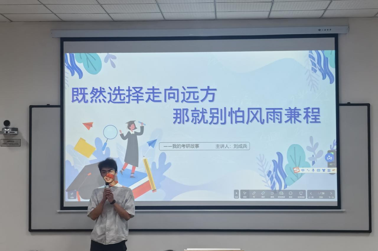 班会上,辅导员们围绕交通安全、人身安全、财产安全、消防安全、网络安全、防溺水安全等多个方面,结合实际案例,为同学们详细讲解了假期中可能遇到的安全问题及应对方法。紧接着,21届学长刘成兵来到现场与学弟学妹们面对面分享自己的考研经历与心得,他告诉同学们考研要早做打算,在选择专业院校时,应该根据自身情况考虑,不能好高骛远,也不应妄自菲薄,面对考研应做好学习的规划,考研任务紧强度大,要有坚持下去的毅力,在备考前期,心态调整也很重要。对于薄弱学科,刘成兵学长也是重视有加,他强调要对此制定针对性计划,并提出不仅是考研,就算是考公,坚持才是最优解。