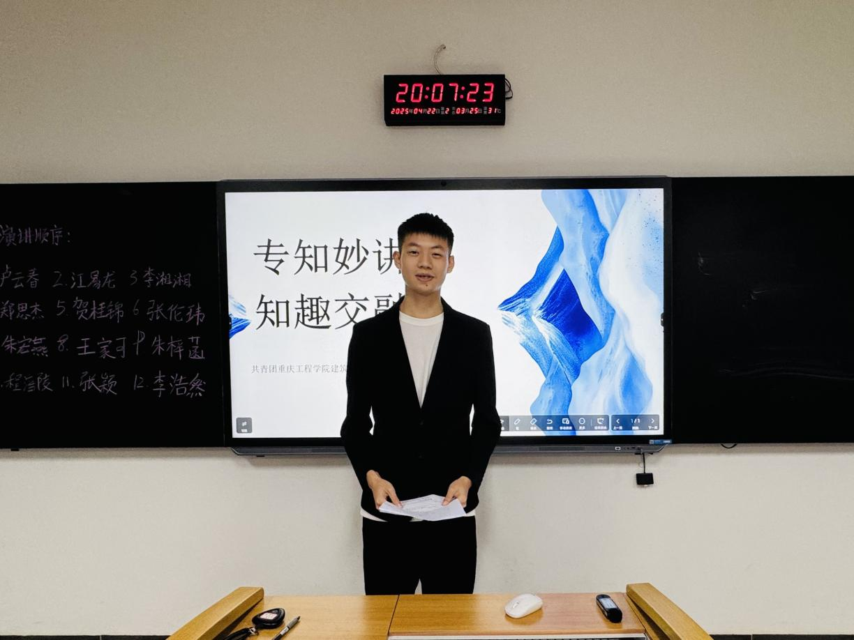 本网讯(文/图 建筑工程学院) 为提升学生专业素养,促进知识共享与交流,提升同学们的实践与表达能力。建筑工程学院学生会学习部于4月22日19:00—20:30在第六教学楼113教室举办“专知妙讲,知趣交融”主题晨课演讲活动。本次活动面向建筑工程学院22级、23级全体同学,由建筑工程学院21级环境设计专业辅导员王文娟老师及建筑工程学院团委、学生会骨干代表担任此次评委。