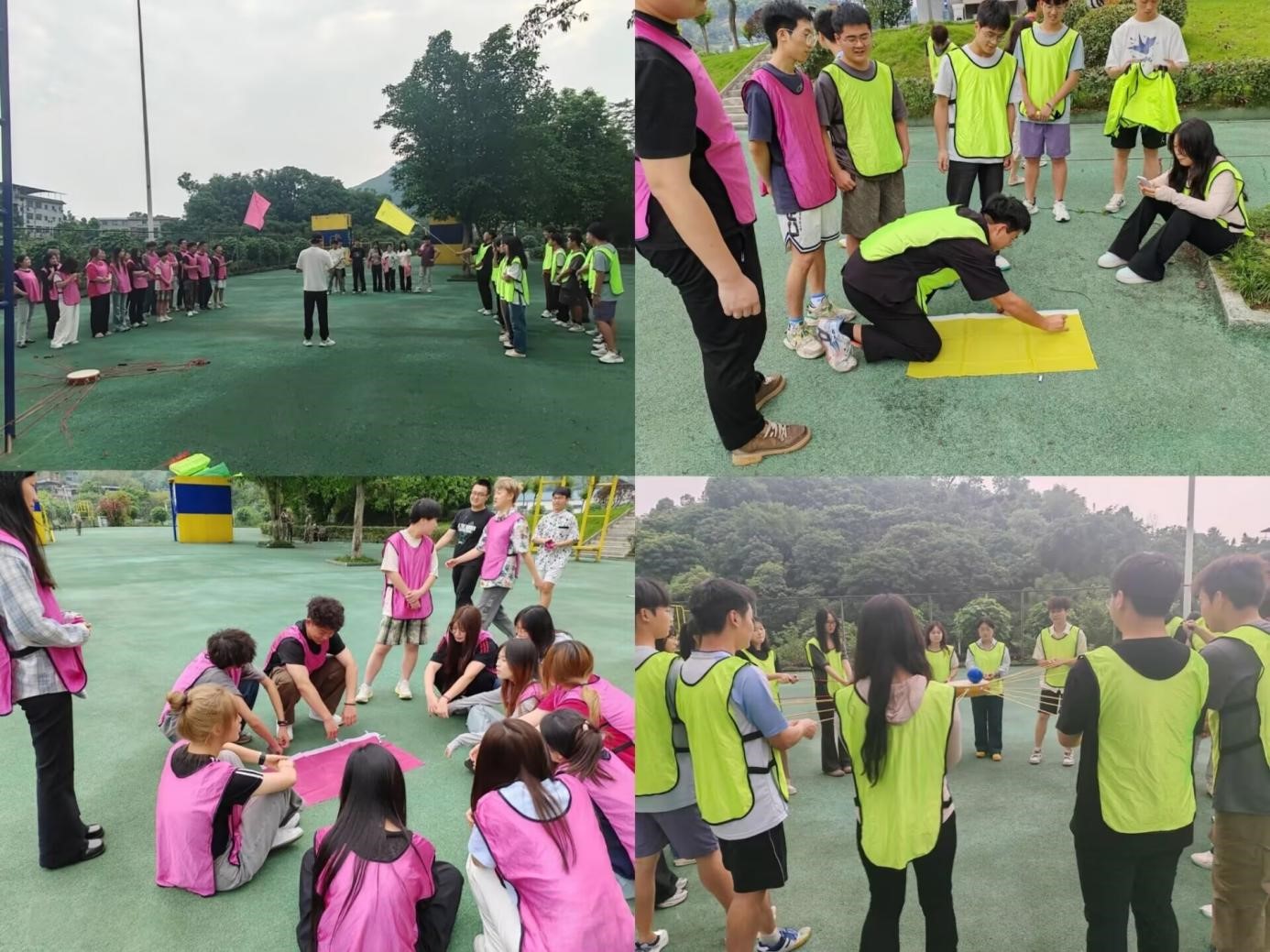 活动伊始,同学们在规定时间内到达素质拓展基地并快速集合后,带队老师详细阐述了安全须知,并亲自指导同学们完成热身活动,以预防意外确保活动顺利进行。随后,同学们被分为两组,在老师的引导下开始制作各自的队旗和队徽,考验了团队的合作能力,培养了同学们的团队精神。在后面的“摆脱厄运、抓住好运”环节,同学们可以更加默契进行游戏,全情投入,感受到专注的魅力,增强了团队协作能力。活动进入尾声,带队老师对本次活动进行了全面总结,强调了团队精神的核心地位,并鼓励学生骨干们以“石榴籽”般紧密的团结精神,共同推动建筑工程学院向更高质量的发展目标迈进。