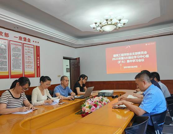 本网讯(文/图 吴俊峰) 5月29日,建筑工程学院党总支理论学习中心组召开了第三次集中学习会议,党总支委员、学院领导班子及各支部书记参加了会议。