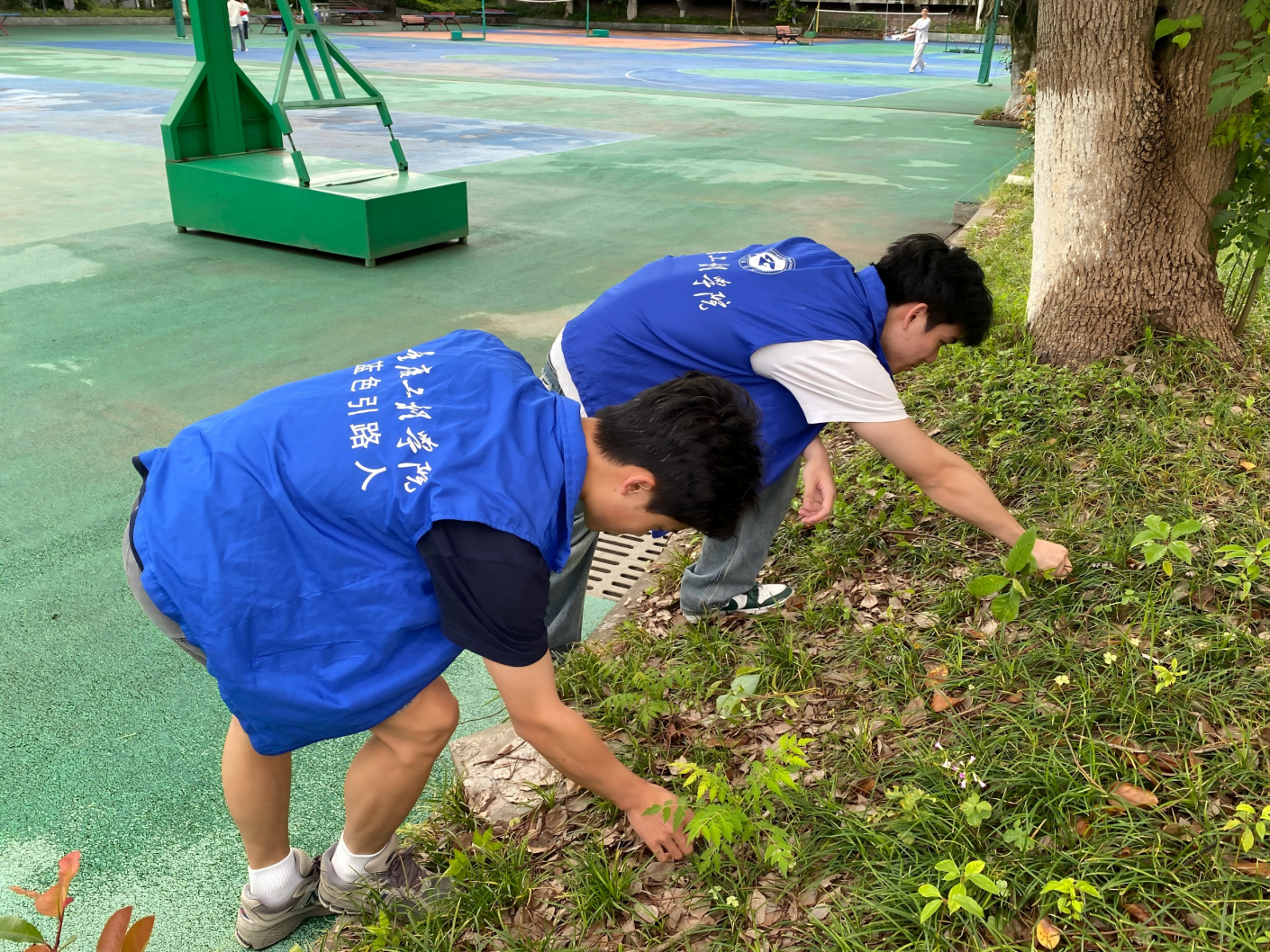 活动现场,活动负责人进行开场动员,强调本次活动对于守护长江上游生态屏障的重要意义。随后,同学们如同敏锐的 “生态猎人”,手持垃圾袋,穿梭在草丛与石缝间。在清理垃圾的同时,部分同学手持小铲子、除草钳,专注投入到拔草工作中。杂草根系发达,紧紧扎根在泥土里,甚至缠绕在石板缝隙间,但同学们毫不退缩,或蹲下身子用力拉扯,或借助工具小心铲除,将生长旺盛的杂草连根拔起。他们不放过任何一处角落,弯腰、伸手、夹取,动作娴熟而利落。经过两个小时的辛勤劳动,花溪河畔旧貌换新颜。原本杂乱的河畔变得干净整洁,步道一尘不染。