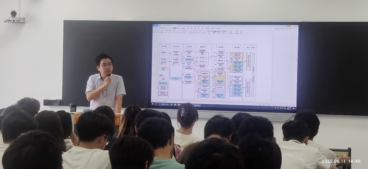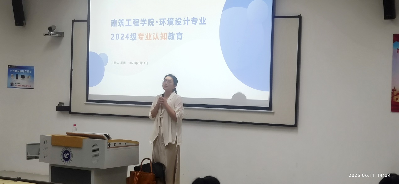 在专业认知教育活动过程中,各系部主任结合专业特点,详细的介绍了培养目标、课程体系及实践环节。工程造价专业(主讲人:安雪玮):强调工程造价的核心是工程计量与计价,培养具备全过程造价管理能力的复合型人才。环境设计专业(主讲人:杨玥):聚焦创意设计与技术应用的结合,注重空间规划、美学素养及数字化工具应用能力。土木工程专业(主讲人:林俊):围绕建筑工程全生命周期管理,涵盖结构设计、施工组织及工程管理等内容。智能建造专业(主讲人:王姝):聚焦建筑信息化与智能化技术,涵盖BIM技术、智能施工管理、物联网应用等前沿领域。