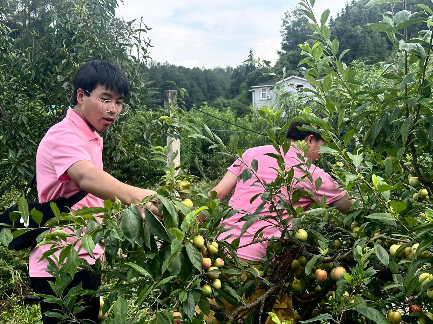 正值李子丰收季,实践团队深入果园帮助村民采摘劳作。在农户指导下,队员们学习到了果树栽培、管理、采摘等技术,体验“晨兴理荒秽,带月荷锄归”的农耕生活。通过面对面交流,队员们了解到当地农产品从种植到销售的全过程,对“乡村振兴”战略有了更直观的认识。