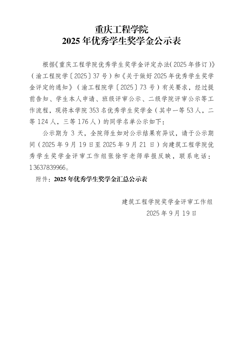 2025年优秀学生奖学金公示