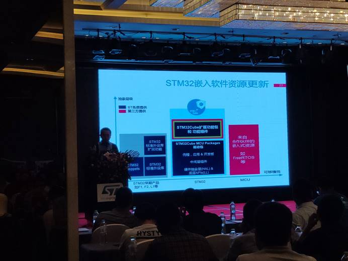 首先,会议介绍了SMT32中国市场策略以及新产品,让我们了解现如今STM32在中国的发展趋势和STM32物联网核心战略的发展方向、速度及质量;其次展示了“芯系”物联网-STM32物联网和云接方案;最后,科大讯飞的部门经理向我们介绍了ST电机控制开发套件5.0以及MXCHIP(庆科信息物联网解决方案)。