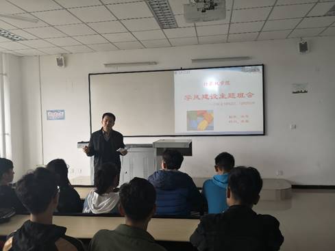 (计科系-韩坤)2018年10月23日,计算机科学与技术系2018级1890202和1890203班在兼职班主任韩坤老师的主持下,开展了促学风建设主题班会活动。