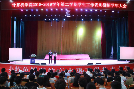 本网讯(文/图 学生会 江佳励) 为了推动学院快速发展,鼓励优秀学生团体及个人成长,计算机学院于2019年9月18日16:30在学术报告报告厅举行“2018-2019学年第二学期学生工作表彰暨新学年大会”,出席此次大会的领导有学院副院长谢正兰、副院长谢箭、学院党总支书记覃华伟、学工办主任张景冬及各行政(系)主任。