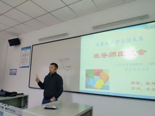 本网讯(文/图 韩坤)2019年10月22日16点,计算机科学与技术系1990201班、1990202班,在双桥校区S301教室举行班导师座谈会,会议由班导师韩坤老师主持,计科系1990201、1990202班全体同学参加。