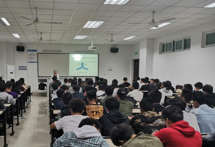 本网讯(文/图 李海燕)为帮助大一学生确立学习目标、端正学习态度、提高学习效率,养成良好的学习习惯,2019年10月23日18点50分,2019级计算机科学与技术专业1990203、1990204班班导师——李海燕老师在302教室组织学生开展了一次关于积极报考“全国计算机二级考试”为主题的学业指导活动。