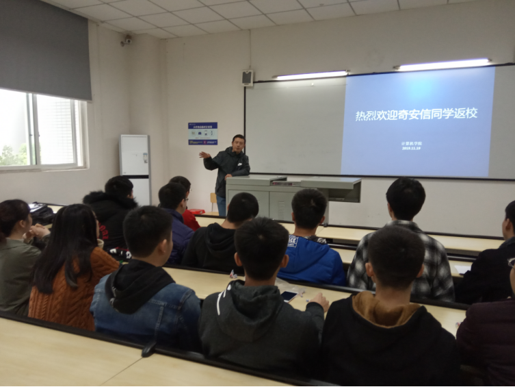 19日14:00-15:00,2020届奇安信订单班的14位同学在6107教室开展奇安信订单班学习交流会,活动由包海宾老师主持,魏星老师和负责实习实训的张杰老师参加。每位同学都上台分享了从今年4月23日离开学校,前往绵阳基地学习、参加认证考试、带训与入职、项目实习的体会,并对学弟学妹们提出了建议。同学们通过自身努力,战胜各种各样的困难,成功入职国内领先的信息安全企业,在各自不同的岗位上都站稳了脚跟。分享活动中同学们表现出沉稳自信的良好精神风貌,对学校课程教学改进和订单班工作提出了很有价值的建议,包括建议学校加强交流沟通等软技能的培养、加强网络基础知识教学等。