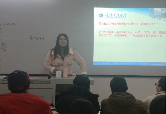 班导会伊始,孙令翠老师询问了同学们有关情商的问题,然后讲述了一个故事,孙令翠老师引用这个故事告诉同学们情商的重要性,情商在职场上更加重要,它或许会让你在职场上少碰一些壁,同时,孙令翠老师还告诫同学们在职场上心态一定要放平,嫉妒心不要太重,例如,在工作上两个人做着相同的事,其中一个涨工资,另一个没有涨,老板这么做看似不合理,但肯定有其理由的,不要太嫉妒,我们只要努力做好自己的,提高个人的自身价值,当我们的个人价值超过老板所预期,就会得到回报;最后,孙令翠老师播放了一个有关于一个年入百万的人在北京生活的大致情况,意在告诉同学们努力学习,提高自己。