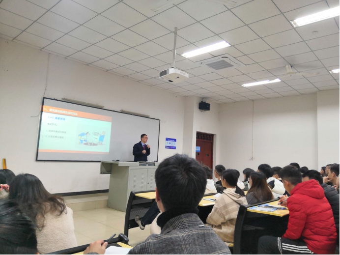 本网讯(文/魏克非 图/冉俊洁) 2019年12月8日下午18时30分,为增强应届毕业生求职就业过程中的法律意识,熟悉《劳动合同法》相关内容,了解维护自身合法权益的渠道方法,我院在第六教学楼201教室组织召开“警惕就业陷阱,依法维护权”的就业专题讲座。此次讲座由重庆市雷力律师事务所合伙人杨大为律师主讲,2016、2017级约200余名学生参加了讲座。