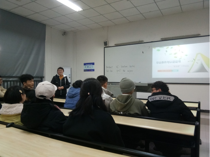 本网讯(文/图 聂增丽)2019年12月11日12:10-13:00,在6103组织物联网工程专业1791103班同学召开了毕业条件与认证证书解读为主题的指导交流会。会议由班导师聂增丽主持,1791103班全体同学参与。