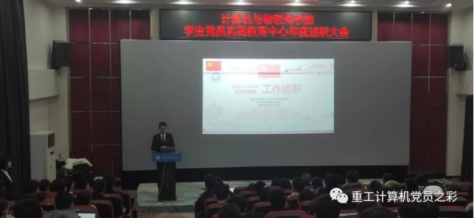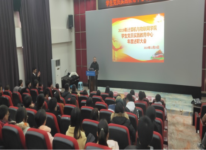 本网讯(文/梁益建 图/洪海涛)为进一步提升学院党建工作质量,计算机与物联网学院学生党员实践教育中心于12月23日12:30在行政报告厅召开2019年学生党员实践教育中心年度述职大会,我院党总支书记覃华伟同志、党总支组织委员梁益建同志、学生党支部书记韩梦杰同志、学生党支部组织委员李雯君同志,学生党员、预备党员、发展对象、入党积极分子、入党申请人参加此次会议。首先由计算机与物联网学院学生党员实践教育中心主任林嘉雯同志和副主任陈炫堃同志发言,然后各部门代表进行述职报告。述职内容包括工作回顾、自我评价,工作体会和目标展望四个方面。他们的述职全面总结了计算机与物联网学院学生党员实践中心本年度的工作情况,同时对工作中存在的问题提出解决方案,确保在以后的工作中能够事半功倍。红船劈波行,精神聚人心,学生党员实践教育中心各成员会努力提升自己,积极向党组织靠拢,争取早日成为一名光荣的中国共产党党员。在这条道路上,我们任重而道远、最后党总支书记覃华伟同志进行总结发言。他讲到,所有党性分子要加强政治理论学习,重点是围绕“十九大”精神作为首要的学习任务,学生党员实践教育中心各成员要抓好党建工作,坚持制度建设、规范建设,树立文化自信,要发挥学生党员实践教育中心的先锋模范带头作用。我们应该继续开展“不忘初心、牢记使命”主题教育,总结经验,结合新时代新要求,推动全院围绕守初心、担使命、找差距、抓落实,切实开展主题教育。本次述职大会为学生党员实践教育中心各部门和党性分子提供了一个交流学习的平台,让干部与群众之间的联系更加紧密。同时,也对2020年的工作提出了要求,希望各部门能通过此次述职大会取长补短、共同进步。