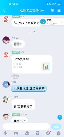 本网讯(文/图 叶敏)2020年3月25日星期三下午15:00,物联网工程系在系部工作QQ群里组织了2019-2020第2学期第5周教学研讨会。本次活动由宋苗主持,物联网工程专业全体教师参加。