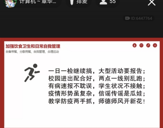 本网讯(文/图 罗桓)按照学校《2020年秋季开学新冠肺炎疫情防控工作方案》要求,计算机与物联网学院于2020年9月1日下午2点,通过在线QQ群课堂组织召开开学报到工作暨疫情防控专题培训会,会议由覃华伟书记主持,学院全体人员参加了会议。