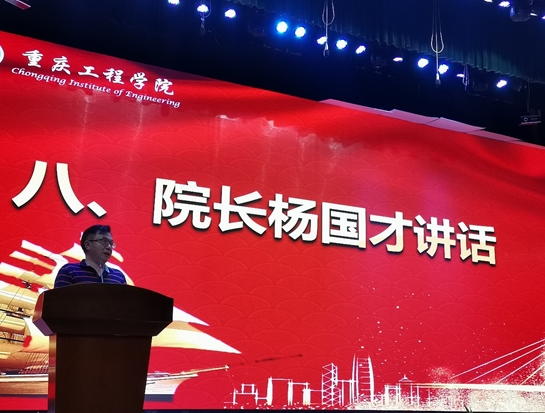 随着我校校歌的响起,大会进行第一项:院学生会主席郭树森进行总结工作,在他的报告中充分感谢重庆工程学院每一位成员的付出和对团委学生会新成员的要求,期望成员们能携手共进、共创辉煌。然后,分团委书记张景冬宣读团委学生会2020-2021学年换届通知,并充分表达对新一任学生会干部的希望和鼓励,希望学生会成员把精神落实在行动中,不断提高自己,完善自己。